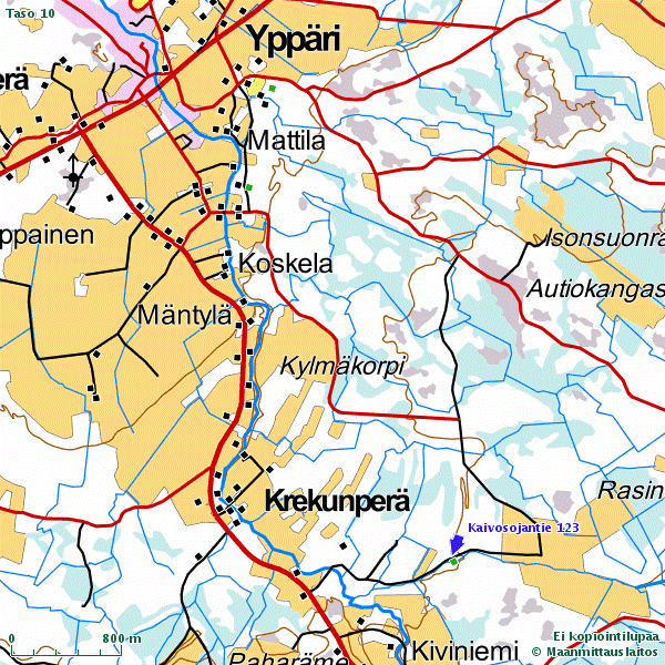 Ajo-ohje: Ajetaan 8-tieltä Alavieskan tietä (7840) n. 4,2 km ja käännytään vasemmalle Kaivosojantielle, jota ajetaan n. 1,2 km.